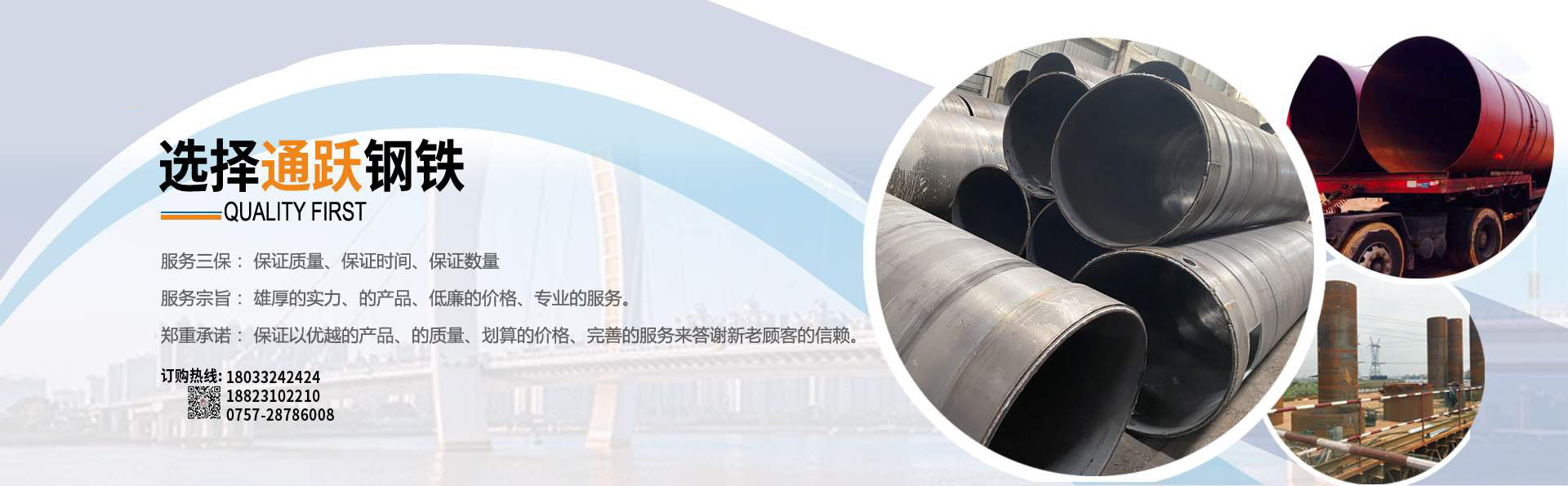 佛山市通躍鋼鐵有限公司 電話188-2310-2210 0757-28786008 擁有多條美國(guó)先進(jìn)的螺旋鋼管生產(chǎn)線,生產(chǎn)直徑φ159-φ3620mm(壁厚6mm-20mm)的雙面埋弧螺旋焊鋼管,年生產(chǎn)能力15萬(wàn)噸。 生產(chǎn)螺旋管 螺旋鋼管 螺旋焊管 規(guī)格厚度6mm-20mm 直徑159mm-3620mm 有多條鋼板卷管機(jī)生產(chǎn)規(guī)格厚度6mm-70mm 直徑400mm-5020mm 螺旋管 螺旋鋼管 鋼護(hù)筒 焊接鋼護(hù)筒 鋼板卷管 丁字焊管 加工格構(gòu)柱 鋼管樁 材質(zhì)Q235B Q345B Q235A 45# 20# Q420D Q390D 錳板 歡迎來(lái)電報(bào)價(jià),公司配有大型型材 鋼板倉(cāng)庫(kù),大量各種規(guī)格現(xiàn)貨H型鋼 槽鋼 角鋼 工字鋼 鋼板,鍍鋅方管 鍍鋅產(chǎn)品 產(chǎn)品可以定尺定長(zhǎng),提供打砂,除銹,上油漆,公司配有防腐加工廠,專(zhuān)業(yè)對(duì)鋼管進(jìn)行內(nèi)外壁防腐加工,鋼管外壁主要有三油兩布,五油三布,環(huán)氧煤瀝青及環(huán)氧樹(shù)脂漆,各種高分子涂料。 ......